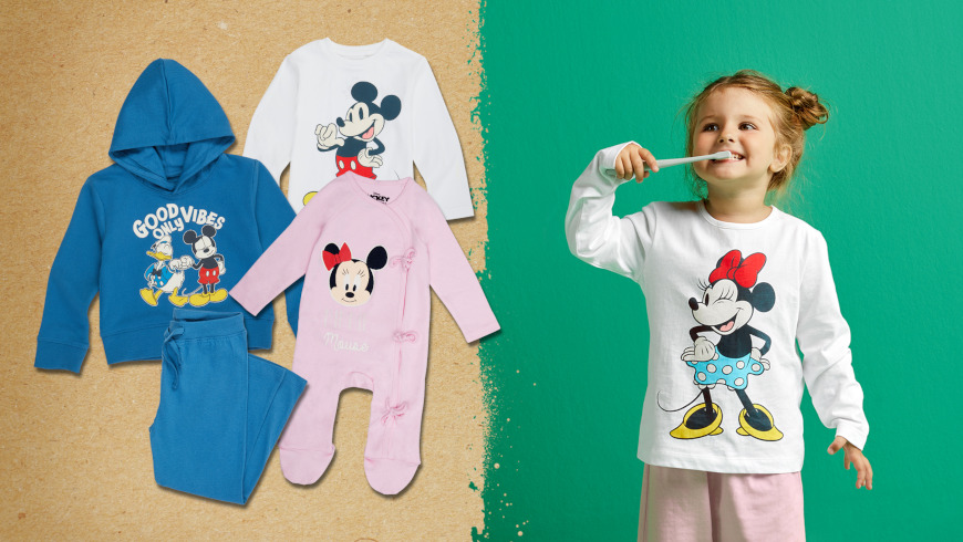 Alle Kleidungsstücke tragen Applikationen bekannter Disneyfiguren wie Mickey Mouse oder Donald Duck und sind in allen Filialen deutschlandweit erhältlich.